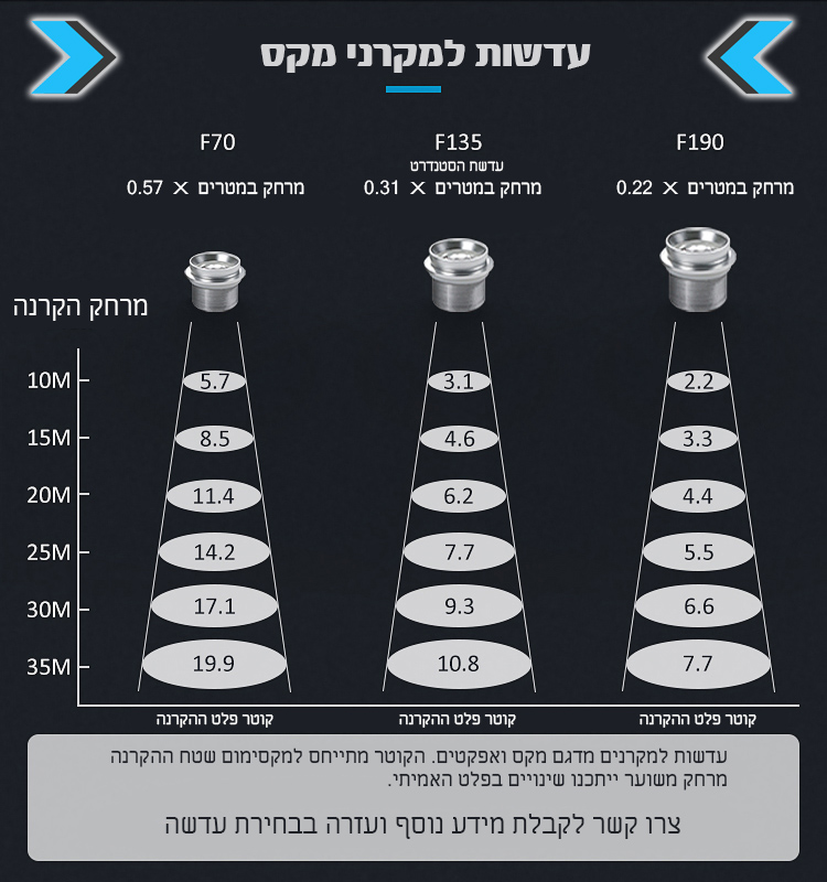 אנו ממליצים להתייעץ איתנו בבחירת מקרן הגובו כדי שנתאים לכם את העוצמה הנדרשת בהתאם למרחק הרצוי.